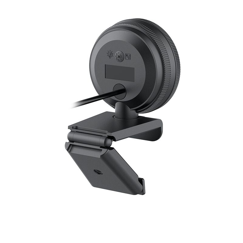Integrated illumination and audio components are core features of this USB webcam. The exterior housing includes a beauty light module controlled via a touch interface. This lighting system features a rotational mechanism and allows users to select from three distinct color temperatures while utilizing stepless dimming for precise brightness calibration. For acoustic capture, the camera is equipped with a 2-channel stereo noise-canceling microphone, designed to isolate primary audio inputs while minimizing background acoustic interference. A manual privacy cover switch is also integrated, offering a physical method to obstruct the lens when video transmission is not required.