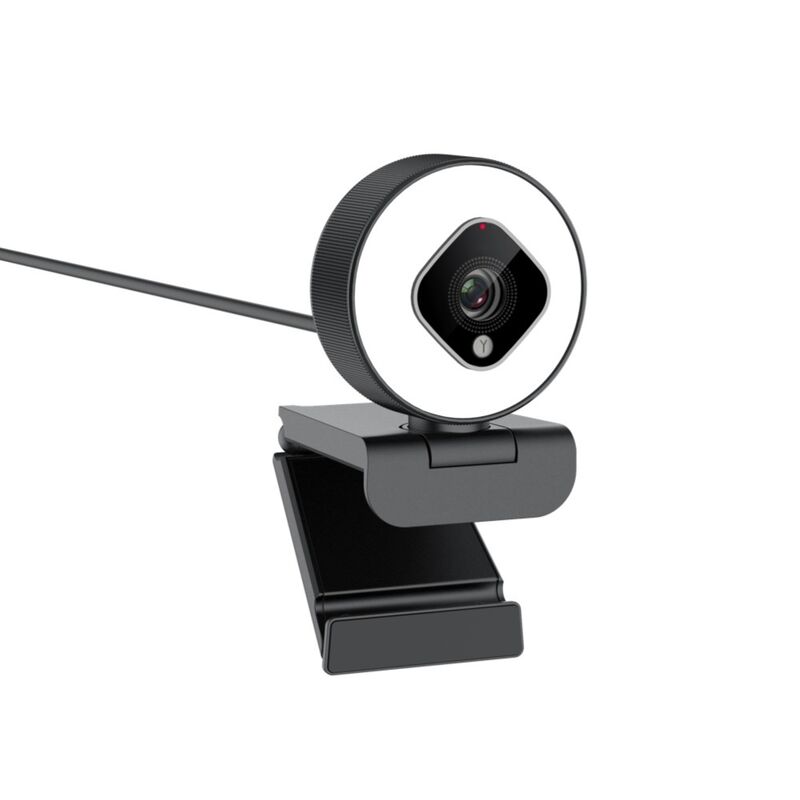 The device is built not just for video, but as a complete audio-visual tool. It houses a built-in 2-channel stereo noise-canceling microphone (MIC) that effectively isolates the user's voice from disruptive background audio. A defining external feature is the integrated beauty fill light, designed to improve visual presentation in low-light conditions. This illumination system is managed by a touch switch. By interacting with this switch, users activate a monochrome temperature stepless dimming function, granting them infinite, smooth control over the exact brightness level emitted by the ring light.